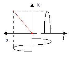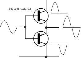 De ruststroom is zó ingesteld dat altijd maar één helft van de uitgangstrap geleidend is. Elke helft verwerkt dus maar één helft van de signaal cyclus.
