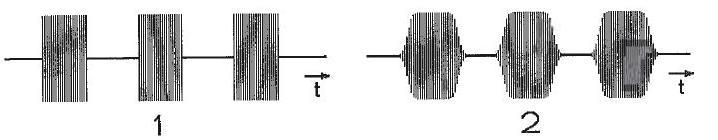 Een hf-telegrafie ontvanger is afgestemd op een 15 MHz standaardfrequentie-zender. Gedurende 15 minuten verloopt de lf-toonhoogte van 1000 Hz naar 1300 Hz.