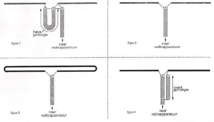 Bij figuur 4 hebben we een 75 ohm dipool met 75 ohm coax voedingslijn én tevens een balun: Antwoord correct.