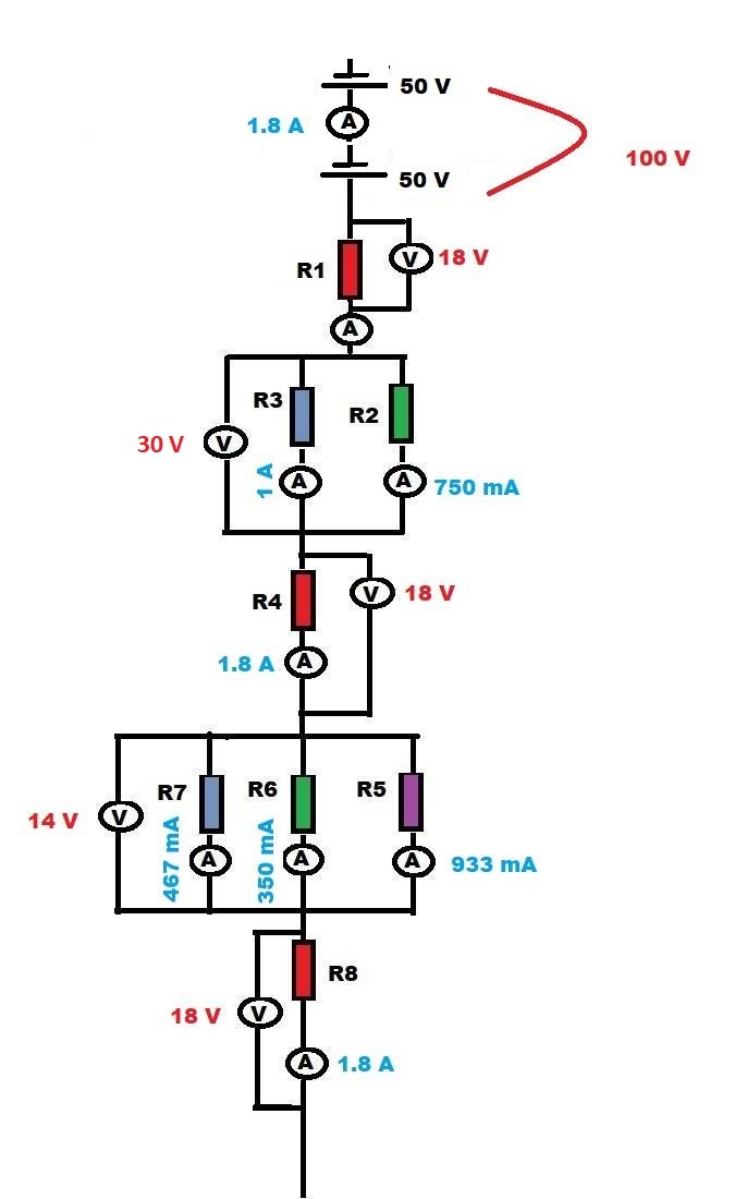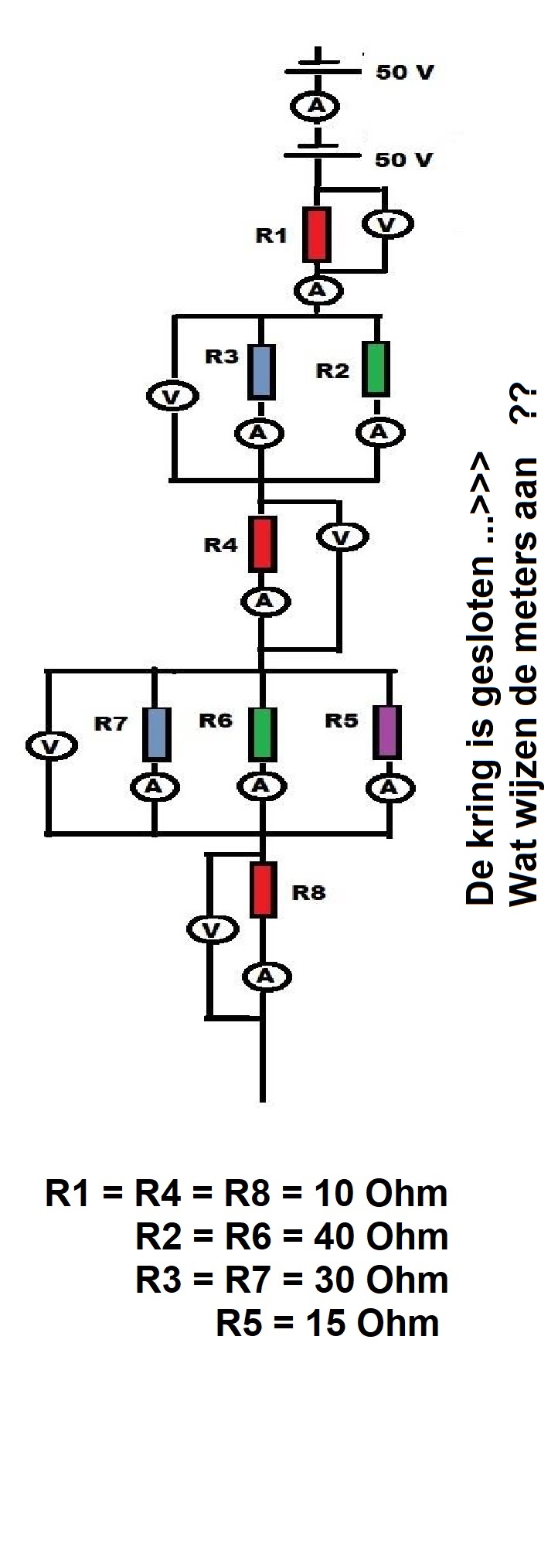 R1 in serie met Rv23 in serie met R4 in serie met Rv567 in serie met R6