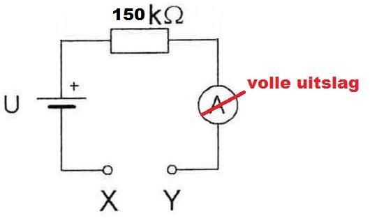 dus we hebben 1 weerstand van 150 KΩ die volle uitslag geeft