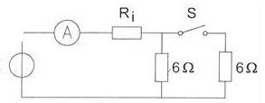 De ampèremeter met een inwendige weerstand van Ri wijst 4 ampère aan.