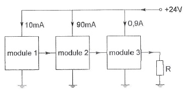 Het totale opgenomen vermogen van deze drie modulen is: