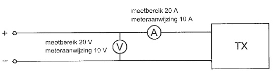 Om het opgenomen vermogen van de zender te meten gebruikt men een voltmeter en een ampéremeter.