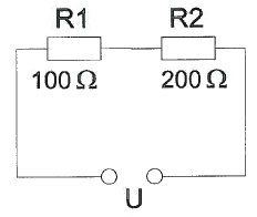 In R2 wordt een vermogen gedissipeerd van 1 watt. In R1 wordt een vermogen gedissipeerd van:
