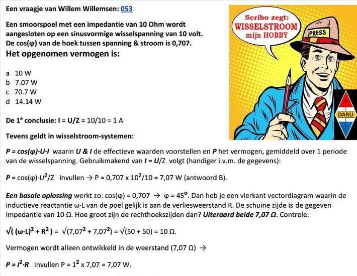 Een smoorspoel met een impedantie van 10 ohm wordt aangesloten op een sinusvormige wisselspanning van 10 volt.
