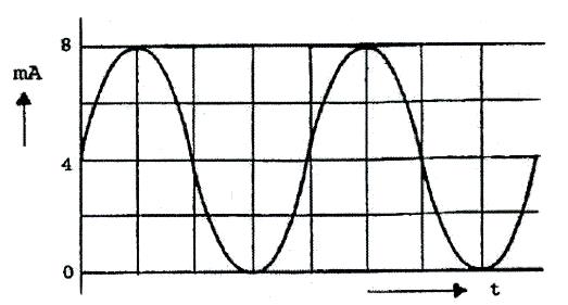 Een sinusvormige wisselspanning heeft een maximale waarde van 10 volt.