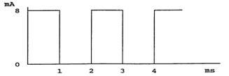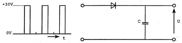 Aan de ingang van een enkelzijdige gelijkrichter is een pulsvormige spanning aangesloten.