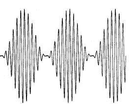 De oscilloscoop, aangesloten op de antenne aansluiting van een zender, vertoont het volgende beeld.