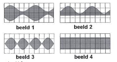Het uitgangssignaal wordt op een oscilloscoop zichtbaar gemaakt.