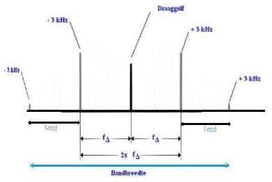 Een 2-meter FM-zender wordt gemoduleerd met een 1000 Hz toon waarvan de amplitude constant is.