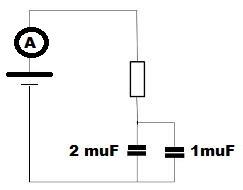 Na het hieraan parallel schakelen ven een niet geladen condensator van 2 mirofarad wordt de spanning over beiden condensatoren: