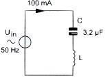 Xc = 1/(2pifC) = 1/ (2*pi*50*3.2exp-6) = 1000 Ω = 1 KΩ