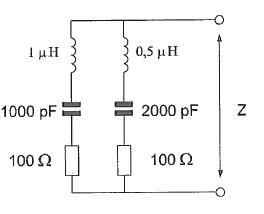 Bij een frequentie, hoger dan de resonantiefrequentie, is de impedantie van deze seriekring: