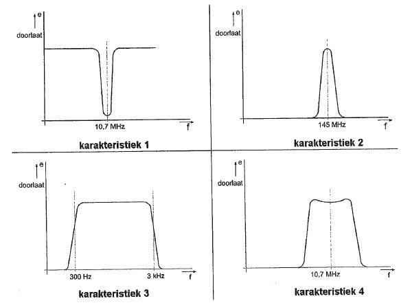 Welke frequentiekarakteristiek behoort bij de middenfrequent versterker van een 2-meter band ontvanger?