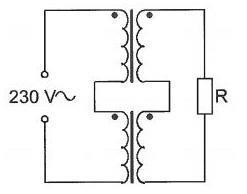 De 2 trafos staan in serie en zullen elk een ingangsspanning hebben van 230/2 =115 V