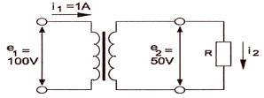 Een ideale transformator is belast zoals hieronder aangegeven.
