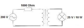 Om de lamp maximaal te laten branden moet de wikkelverhouding van de aanpassingstrafo zijn: