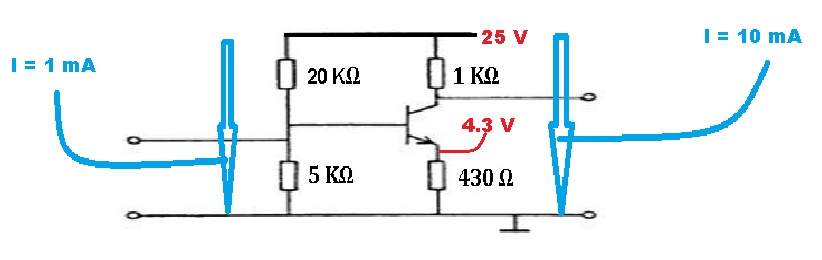 Ie = Ue / Re = 4.3/430 = 10 mA