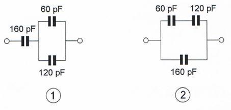 In een hoogfrequentkring wordt een vaste condensator van 80 pF in serie geschakeld met een variabele condensator.