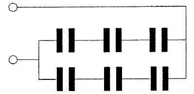 Twee condensatoren van 2000 picofarad worden parallel geschakeld