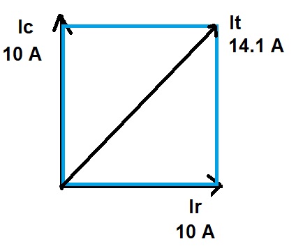 Ic = Uc / Xc = 100 / 10 = 10 A