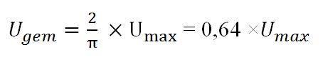 Als we een volledige sinus voor ogen zien is de amplitude boven de nul gelijk aan de amplitude onder de nul, de gemiddelde waarde zal dan nul zijn. Nemen we nu alleen het gedeelte boven de nullijn, dan zal de gemiddelde waarde 2/Π × Umax zijn.