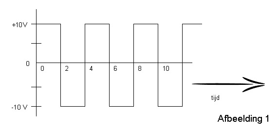 In afbeelding 1 zie je een blokgolf uitgezet tegen de tijd.