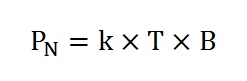 Als wij het ruisvermogen per Hertz willen uitrekenen, kunnen wij de bandbreedte weglaten, we krijgen dan: