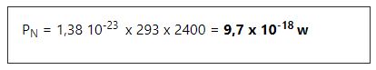 We gaan het ruisvermogen in een weerstand onder onze omgevingstemperatuur berekenen (20 °C) voor een doorlaatband van 2400 Hz.