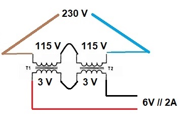 1 TRAFO 230V // 6V // 2A + 1 TRAFO 230V // 6V // 2A
