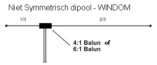 Wordt gebruikt bij een antenne die niet geheel symmetrische is en een impedantie heeft van circa 200-300 ohm.