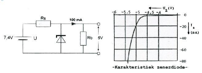 De zenerdiode in de schakeling heeft de onderstaande karakteristiek.