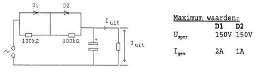 De dioden hebben gelijke doorlaatkarakteristieken maar de belastbaarheid is verschillend.