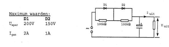 Kies uit de alternatieven de combinatie van hoogste Uuit en grootste Iuit die de schakeling kan leveren: