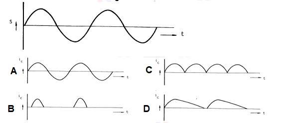 Als een NPN-transistor in klasse C is ingesteld en is geen ingangssignaal, dan: