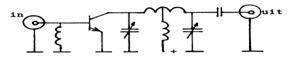 Op de ingang van een frequentievermenigvuldiger met één transistor wordt een sinusvormig signaal aangebracht.
