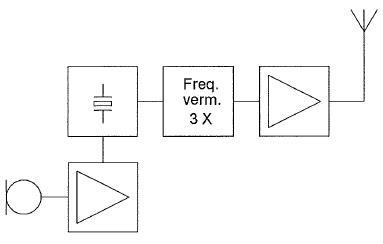 Een 432 Mhz zender bestaat uit een gemoduleerde oscillator op 18 Mhz, gevolgd door frequentievermenigvuldiger trappen.