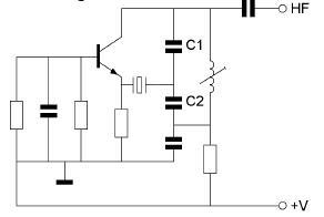 In een 2-meter zender wordt het signaal van een 12Mhz oscillator vermenigvuldigd naar een zendfrequentie van 144Mhz.