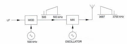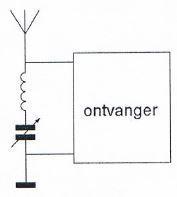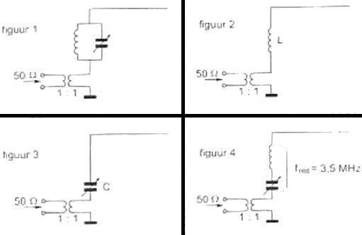 Een zender werkend op 3,5 Mhz wordt aangesloten op een antenne bestaande uit een draad met een lente van 25 meter