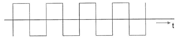 Een symmetrisch blokvormig signaal heeft een grondfrequentie van 1500 Hz.