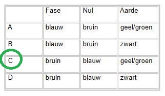 De juiste kleuraanduiding van de draden in een netaansluiting is: