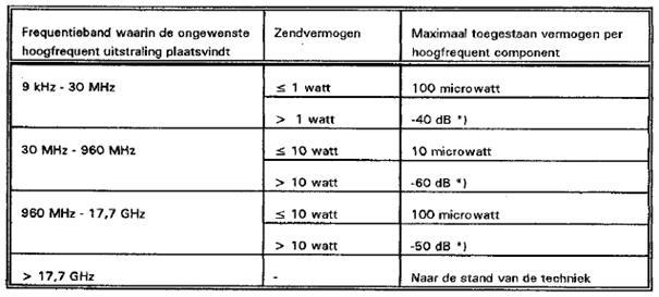 Het vemogen van ongewenste hoogfrequente uitstralingen in de frequentieband