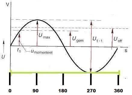 Een sinusvormige wisselspanning heeft een effectieve waarde van 100 volt.