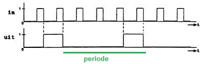 Van een deler voor digitale signalen is het in- en uitgangssignaal gegeven.