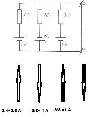 De stroom welke door de kortsluitdraad tussen X en Y vloeit is: (let op de polariteit)