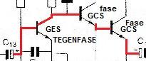 Op de loper van R15 is een sinusvormig signaal aanwezig