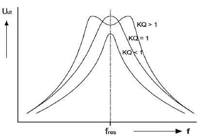 De spanning U over de secundaire van 2 overkritisch gekoppelde kringen. als functie van de frequentie, is gegeven door