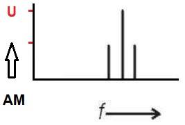Bij 100% modulatie met één toon is de amplitude (Umax) de helft van de draaggolf.
