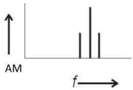 Het frequentiespectrum van een hf-signaal dat 50% amplitude gemoduleerd is met één constante lf-sinustrilling vertoont: